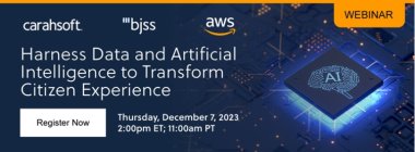 At the recent webinar with BJSS, AWS & Carahsoft, attendees learned from our experts about their greatest challenges and success stories with using AI to transform their public services,