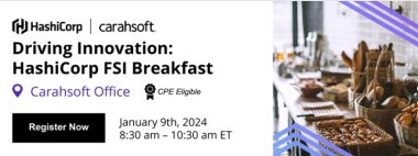 Join the HashiCorp Federal team at the Carahsoft office on Tuesday, January 9th, to delve into the ManTech customer story, as well as the Cloud Operating Model, including Terraform, Vault, Consul, Nomad and Boundary.