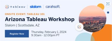 Come join the fun with a hands-on experience and opportunity to network with your peers in Arizona. Attend our beginner's workshop for an introduction to Tableau Desktop & Tableau Server, or take your skills to the next level with our intermediate workshop.