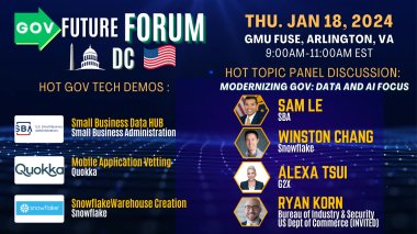 GovFuture Forum DC January 2024 featuring SBA, BIS (DOC), Snowflake, Quokka, and G2X