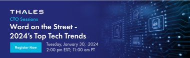 On the first installment of Thales TCT’s CTO Sessions Webcast Series for 2024, Thales TCT’s CTO Office shared their insights and predictions on the top 5 tech trends for the year and what these trends mean for federal agencies: