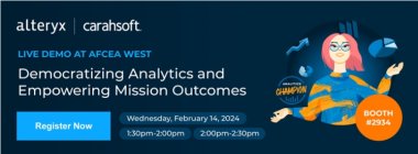 Visit us in the Carahsoft Pavilion and learn first-hand how a democratized approach to analytics will enable your domain experts with the self-service analytics capability they need to accelerate mission outcomes.