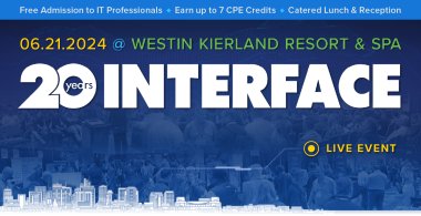 INTERFACE is a single-day conference covering Information Security, Infrastructure, Cloud, Disaster Recovery, Communications, and more. Showcasing our no-cost, CPE-accredited conference series in eleven cities this year, INTERFACE connects, celebrates, and supports the IT community. Developed in collaboration with IT associations and regional advisory councils comprised of CIOs, CISOs, VPs, and Directors involved in IT, INTERFACE is the premier series of events for IT professionals as a source for the latest insights and thought leadership in the many fields of today’s trending technologies.