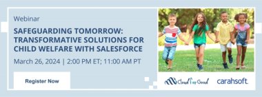 During our webinar with Cloud for Good: Safeguarding Tomorrow: Transformative Solutions for Child Welfare with Salesforce, experts discussed how ensuring the safety and well-being of every child is a shared responsibility, and how technology can play a pivotal role in achieving this goal.