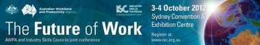 AWPA together with the nation's 11 Industry Skills Councils will be hosting a conference titled ‘The Future of Work- Developing Australia’s workforce in a global economy’ on Wednesday and Thursday 3-4 October 2012 at the Sydney Convention and Exhibition Centre.