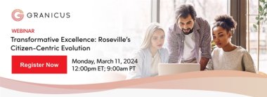 Register now for a complimentary webinar where Granicus will explore the success story of Roseville, California, and their journey to enhance the citizen experience through effective change management.
