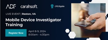 ADF Solutions is excited to offer a complimentary, hands-on, instructor-led training for Mobile Device Investigator® (MDI), and a free 6-month license and MDI User Certificate to all attendees upon completion of the training!