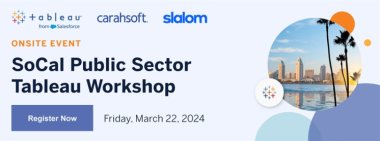 Come join the fun with a hands-on experience and opportunity to network with your government/K12 peers in Southern California. Attend our beginner's workshop for an introduction to Tableau Desktop & Tableau Server, or take your skills to the next level with our intermediate workshop.