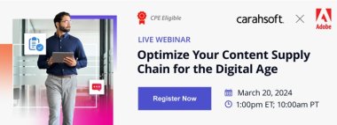 To deliver personalized customer experiences effectively in today’s digital age, you must be outputting a consistently large pool of content, and to meet this content demand effectively, organizations must have strong processes and procedures established. However, many challenges such as time spent finding assets can hinder an organization’s content velocity. With Adobe solutions, you can streamline operations, cultivate teamwork, and deliver seamless digital experiences.