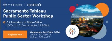 Come join the fun with a hands-on experience and opportunity to network with your government/K12 peers in Sacramento. Attend our beginner's workshop for an introduction to Tableau Desktop & Tableau Server or take your skills to the next level with our intermediate workshop.