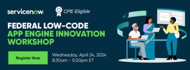 Join us in-person for a full day hands-on Low-Code App Engine Innovation Workshop to see how organizations are re-imagining their approach to automation and app development with ServiceNow's Creator Workflows. Learn how to boost productivity at scale by building high-value low-code mission apps with App Engine. Whether you're a pro developer of any level looking to streamline repetitive tasks, a low-code business analyst looking for ways to solve unique mission challenges, an architect ready to drive the next phase of innovation, or a business leader seeking the right automation solutions, this low-code hands-on workshop is for you!