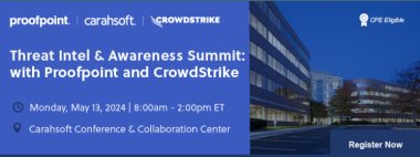 Join your Proofpoint and CrowdStrike counterparts for a Better Together joint Threat Intel and Awareness Summit at Carahsoft's Conference & Collaboration Center in Reston, VA on Monday, May 13th from 8:00am - 2:00pm!