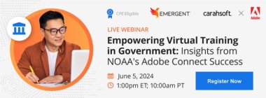 Watch this on-demand webinar which explores how Adobe Connect supports the DOC and its sub-agencies in achieving their training goals while keeping attendee interest high. Mike Shelby, Deputy Communications Director and Robert Levy, Video Production Manager, from the National Oceanic and Atmospheric Administration (NOAA) shares their success stories in using Adobe Connect for webinars, demonstrating the unique features that have contributed to their success. Learn how they utilize these tools to create impactful events and how they adapt to meet the evolving needs of their audiences.