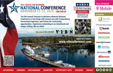 The Veterans In Business (VIB) Network National Conference is excited to be in beautiful San Diego, California - November 13-14, 2024. This conference is designed to help Veteran businesses build connections between Corporations, Government Agencies, and Primes looking to create partnerships for contracting opportunities.