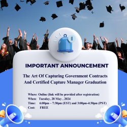 Come join us for this upcoming class on Capture Management: The Art of Capturing Government Contracts and Certified Capture Manager graduation