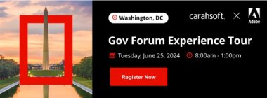 Join us for the Adobe Gov Forum Experience Tour to hear firsthand from public sector leaders who have found success in creating and delivering messages with content that increases engagement, focuses on mission efficiency, and meets customer expectations.
