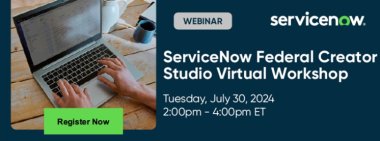 - Hear and see successful examples of how other federal agencies are driving rapid innovation at scale with ServiceNow's no-code Creator Studio.