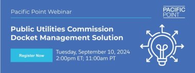 Our webinar with Pacific Point occured on Tuesday, September 10th. Attendees learned how the State of Hawaii Public Utilities Commission transformed the public and internal experience with a robust Docket Management Solution based on Salesforce, DocuSign CLM, and Amazon Textract.
