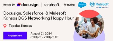 Join Docusign, Mulesoft, and Salesforce for a complementary networking happy hour on August 21st! Connect with industry leaders, explore the latest trends in technology, and build valuable relationships.