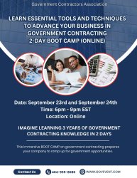 Learn Essential Tools And Techniques To Advance Your Business In Government Contracting--2 Day Boot Camp (online)