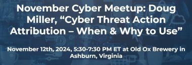 November: Cyber Meetup: Doug Miller, Cyber Threat Action Attribution When & Why to Use