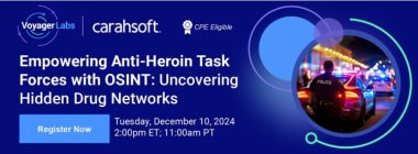 During this webinar attendees learned about Voyager, an advanced OSINT tool for law enforcement to uncover, analyze, and dismantle drug networks. Voyager uses social media, forums, and the dark web to track drug sales, trafficking patterns, and networks. Discover how its AI-powered analytics can accelerate investigations and enhance your agency's impact.
