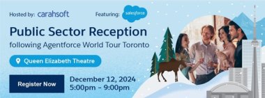 Don't miss out on our public sector reception hosted by Carahsoft following Agentforce World Tour Toronto! Network with your peers and enjoy refreshments at Queen Elizabeth Theatre.