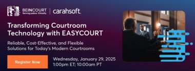We recently hosted an exclusive webinar featuring a live demo by BEINCOURT, showcasing their revolutionary EASYCOURT solution for today's Federal, State, and Tribal Courts. It was a fantastic opportunity to explore how EASYCOURT is transforming the way courtrooms operate, supporting seamless in-person, virtual, and hybrid proceedings.