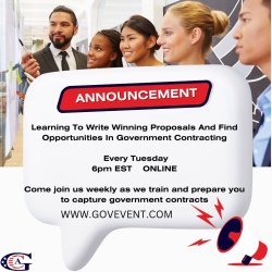 Come join us weekly as we train and prepare you to capture government contracts. These sessions are designed to prepare those enrolled in the Certified Capture Manager (CCM) Program to prepare their businesses for success and to prepare them to become certified capture manager professionals.
