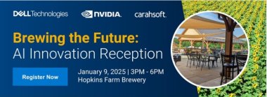 Dell Technologies, NVIDIA and Carahsoft would like to invite you to our Brewing the Future: AI Innovation event. Please join us on January 9th at 3:00PM for cocktails, appetizers, and networking opportunities!