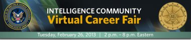 The United States Intelligence Community (IC) invites you to attend the fourth annual IC Virtual Career Fair - a free online event - on Tuesday, February 26, 2013, from 2 p.m. to 8 p.m. (Eastern). Space is limited. To guarantee entrance, pre-registration is highly encouraged. Reserve your spot today!