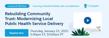 Whether you are a local health department director, epidemiologist, IT leader, or public health professional, this webinar will provide actionable insights to help your organization modernize and rebuild trust through Salesforce-powered public health service delivery. Join us as we explore the transformative potential of CRM technology in restoring community faith in local public health.