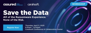 You're invited to join Assured Data Protection and Carahsoft for our Save the Data workshop! This is your exclusive opportunity to learn from a ransomware attack without the actual consequences, giving you crucial insights on how to protect and recover your data.