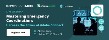 Watch this on-demand webinar where Mike Murtha, Senior Solutions Consultant at Adobe, guides you through the best practices for using Adobe Connect to support emergency operations.