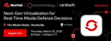 Join Red Hat and One Technology on March 20th for an exclusive workshop tailored for the Missile Defense Agency. Discover how next-generation virtualization is transforming real-time decision-making, boosting system performance, security and agility in defense operations. In this hands-on training, you will: