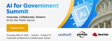 Join Red Hat onsite on May 15th for Carahsoft’s AI for Government Summit as the premier event for exploring how AI is revolutionizing the Public Sector. This summit brings together Federal, State and Local Government leaders, industry innovators and technology experts to discuss the transformative potential of AI in addressing the nation’s most pressing challenges.