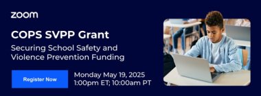 Join us for an upcoming webinar to discover how the violence prevention funding opportunities offered by the Bureau of Justice Assistance and Community Oriented Policing Services are helping schools implement evidence-based safety programs.