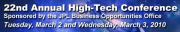 The 22nd Annual High-Tech Small Business Conference will be held on Tuesday, March 2 and Wednesday, March 3, 2010 at the Westin LAX Hotel, located at 5400 Century Blvd., Los Angeles, CA 90045.