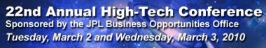 NASA/JPL, in coordination with the U.S. Small Business Administration (SBA), is sponsoring the 22nd Annual High-Tech Small Business Conference on Tuesday, March 2 and Wednesday, March 3, 2010.