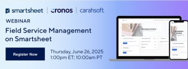 Join Smartsheet, Cronos Consulting Group, and Carahsoft and explore how to elevate field service management across your organization. Whether you're coordinating technicians, managing service requests, or tracking assets, our innovative approach transforms complex workflows into intuitive, scalable solutions.