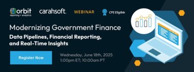 Watch the on-demand webinar to discover how Orbit Analytics empowers public sector organizations with modern data pipelines, robust financial reporting, and intuitive operational dashboards.