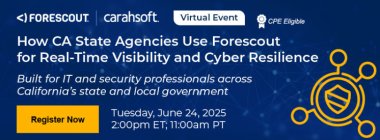 Please join Carahsoft and Forescout for an informative and interactive session that will help you better understand how the use cases and capabilities of Forescout can help your California agency gain total device visibility and protection.