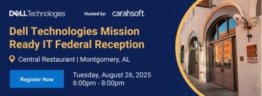 Dell Technologies and Carahsoft would like to invite you to our Dell Technologies Mission Ready IT Federal Reception. Please join us on August 25, 2025, at 6:00 pm for cocktails, appetizers, and networking opportunities!