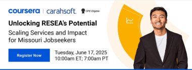 Watch this insightful on-demand webinar on Missouri’s innovative approach to workforce development through the Reemployment Services and Eligibility Assessment (RESEA) program. In partnership with the Missouri Department of Higher Education and Workforce Development (MDHEWD) and Coursera, the session highlights how the state is using online learning to help individuals receiving unemployment benefits find jobs faster. By enhancing job search skills, building in-demand competencies, and boosting jobseeker competitiveness, Missouri is setting a new standard for reemployment initiatives.