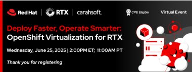 Red Hat hosted an RTX-exclusive virtual event on June 27th to showcase how Red Hat OpenShift Virtualization empowered RTX to accelerate deployments, optimize operations, and drive smarter solutions in a rapidly evolving technology landscape.