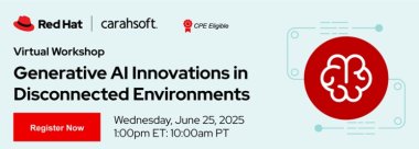 Join Red Hat on June 25th for an exclusive virtual workshop focused on accelerating innovation in Generative AI (GenAI) for mission-critical environments. Red Hat AI delivers a robust, flexible platform enabling the Department of Defense to build, train, and deploy GenAI models optimized for disconnected, intermittent, and limited (DIL) environments.