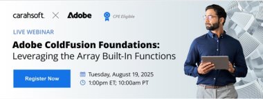 Watch this on-demand webinar to explore how Adobe ColdFusion’s powerful array functions can simplify and accelerate your development projects. Learn creative techniques and see real-world code examples that demonstrate how to manipulate, create, and convert array objects efficiently.
