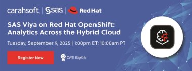 Red Hat and SAS joined Carahsoft online for insights on how their integrated solution helps enterprise IT organizations build and scale analytics on a stable infrastructure and operationalize analytics to get models into production quickly.