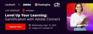 Watch this on-demand webinar where Peter Ryce, Adobe Connect Product Evangelist at Adobe, will be joined by Zach Catto, Sales Manager at MeetingOne, and Rob Porter, VP of Enablement & Marketing at CoSo Cloud. Together, they shared real-world examples, interactive demos, and proven strategies to bring gamification into your virtual training programs using Adobe Connect.