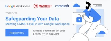 Attendees joined us to learn about CMMC and why it's important, demonstrate how to leverage Google Workspace Enterprise Plus and Assured Controls Plus to meet CMMC 2 standards, and share how ManTech, the first National Security Company to achieve CMMC Level 2 accreditation on Google Workspace, can help you streamline your compliance journey. This is a must-attend event for CIOs, CTOs, and IT leaders looking for a robust and cost-effective solution to protect their data and their contracts.